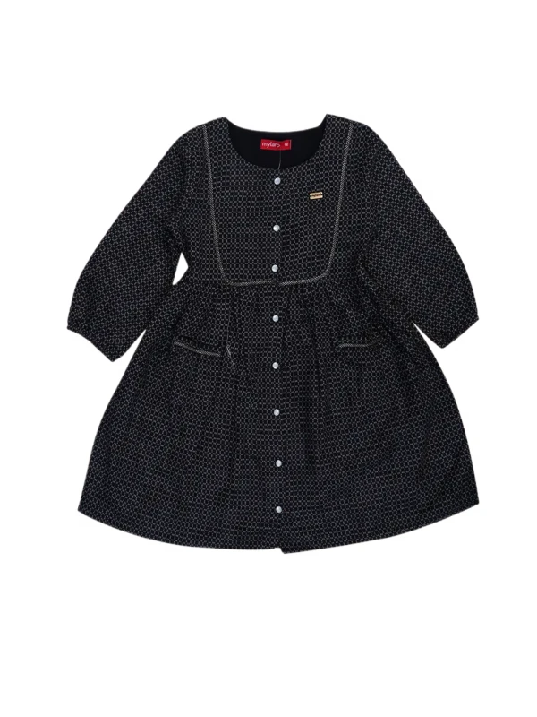 "Classic Black Girls Dress with Front Buttons & Pockets – Full Sleeve Comfort & Style"