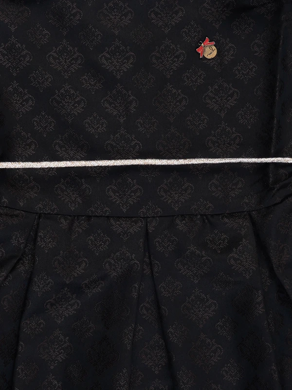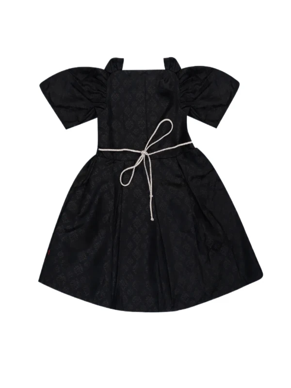 This beautiful black dress features a subtle jacquard pattern, dramatic puff sleeves, and a delicate waist belt. Crafted from rich, breathable fabric – perfect for birthdays, weddings, and festive celebrations!