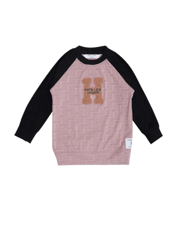 Keep your little champ warm and stylish with this soft blush pink sweatshirt featuring bold TINTA LEO Division embroidery and comfy black sleeves. Perfect for casual outings and cozy days.