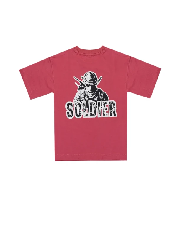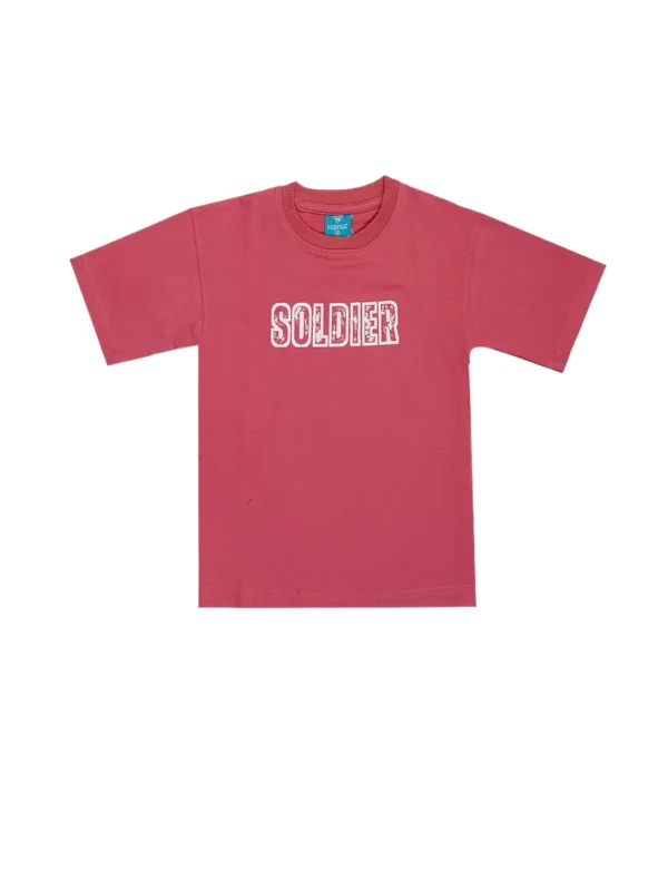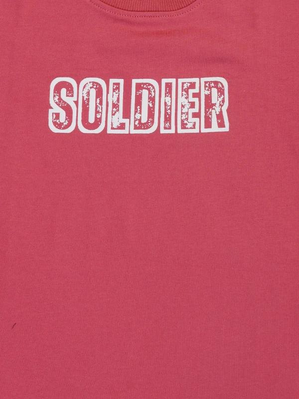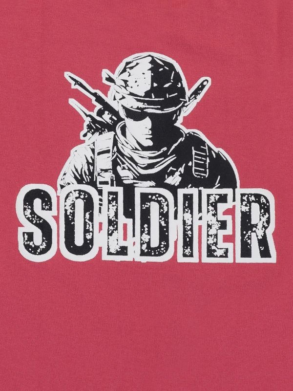 Bold Maroon "Soldier" Graphic Cotton Tee for Boys