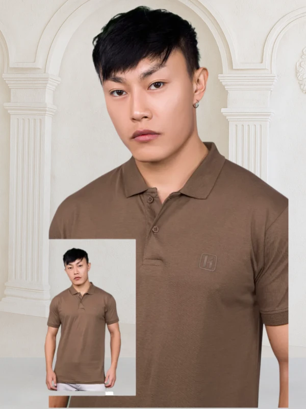 Look sharp and stay comfy with this brown polo t-shirt. Made from breathable cotton fabric with a sleek slim fit, it's ideal for both casual and semi-formal wear.