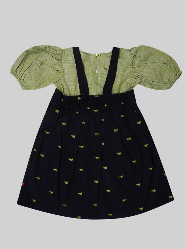This adorable puff-sleeve green top paired with a navy printed skirt is perfect for everyday charm. Made from soft, breathable fabric, it's gentle on skin and ideal for playdates, parties, or outings. Easy to wear and super comfy!