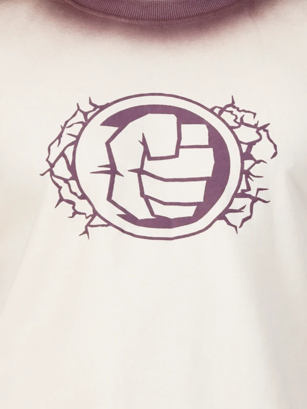 Make a statement with this cream T-shirt featuring a striking maroon ombre effect and powerful graphic print. Crafted for comfort and designed for modern streetwear appeal.