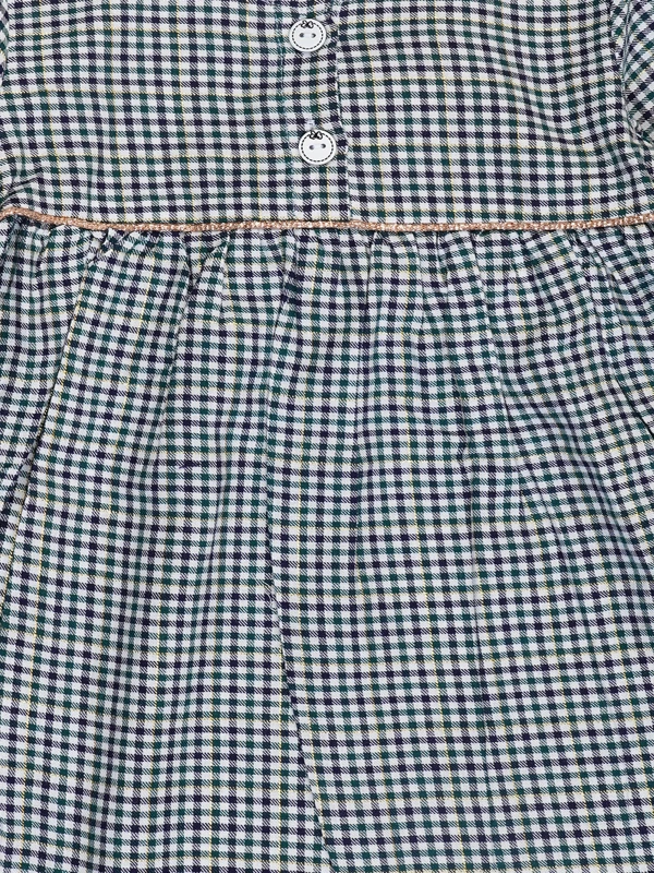 Adorable and comfy, this green gingham dress features cute buttons, a gathered waist, and full sleeves. Made from soft, breathable cotton – perfect for daily wear, playtime, or special moments!