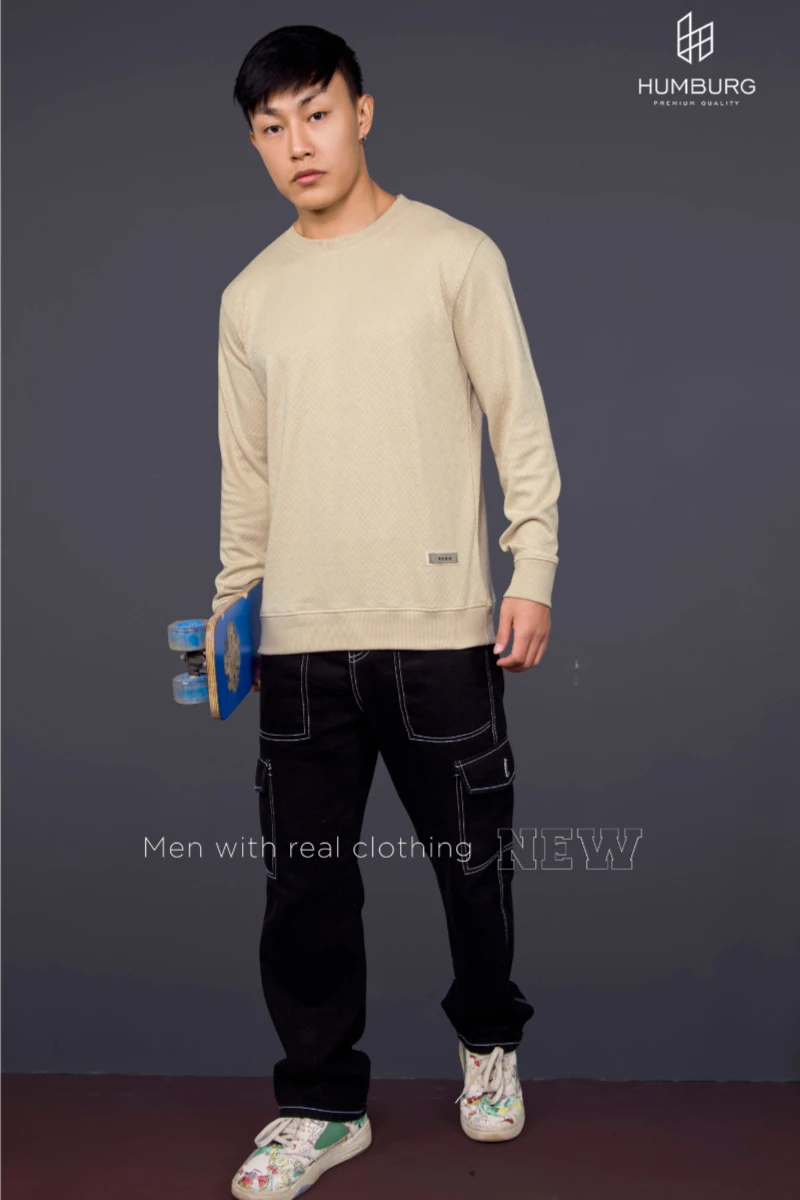 Elevate your everyday essentials with the Humburg Premium Jacquard Sweatshirt in a warm, sophisticated beige tone. Crafted from high-quality Jacquard fabric, this sweatshirt showcases a refined, diamond-inspired textured pattern that adds depth and elegance to your look.