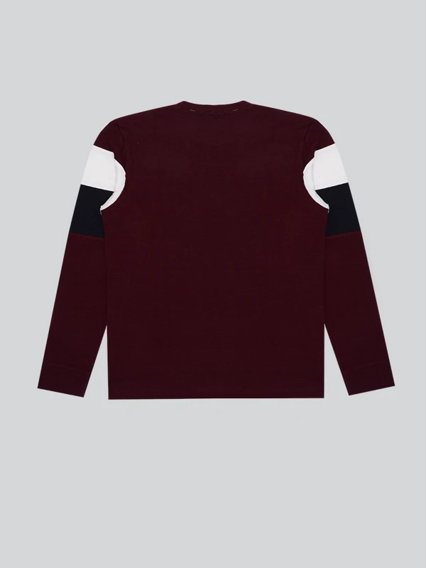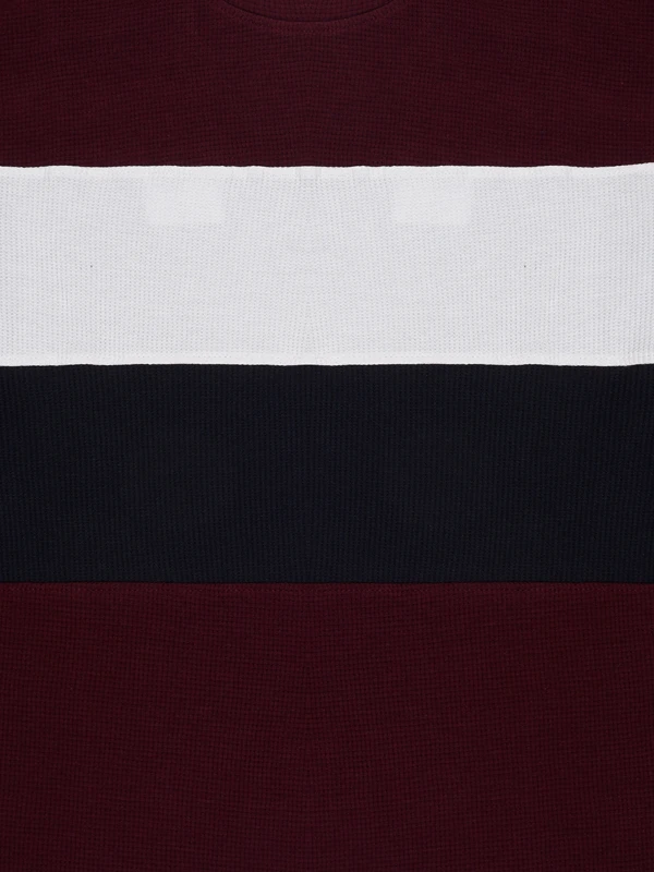 Upgrade your casual look with this maroon, white, and black colorblock full sleeve tee. Crafted from soft, breathable fabric—perfect for everyday wear, outings, and cooler days. Stylish comfort that stands out.