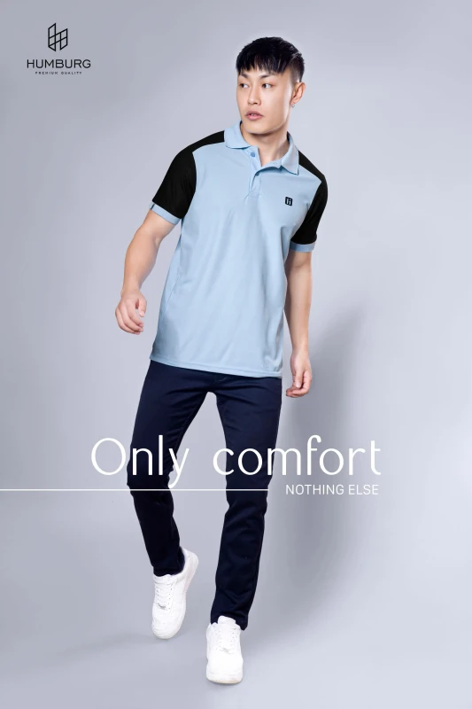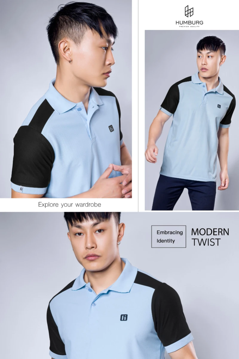 Elevate your everyday style with the Humburg Colorblock Polo T-Shirt, crafted for the modern man who values comfort with a touch of edge. This sky blue polo features striking black sleeves and shoulder panels, creating a bold contrast that's effortlessly stylish.