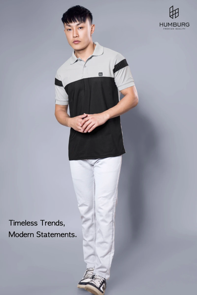 Humburg Premium Colorblock Polo T-Shirt – Grey & Black