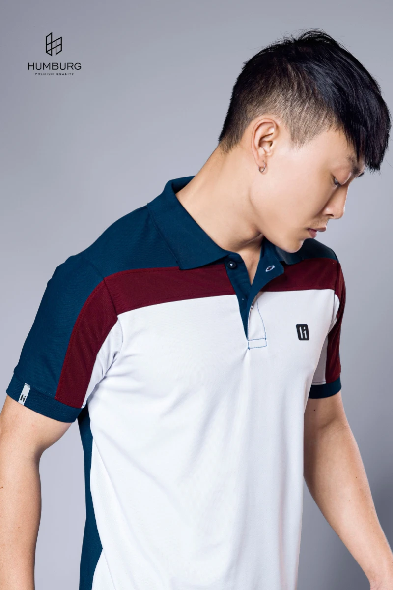 Humburg Colorblock Polo T-Shirt – White, Maroon & Teal