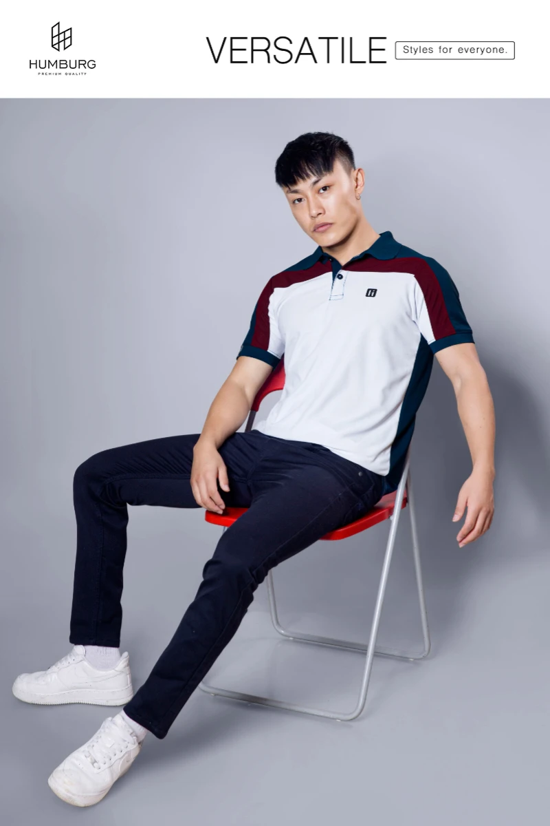 Step up your fashion game with the Humburg Colorblock Polo T-Shirt, a perfect blend of modern design and everyday comfort. Featuring a striking trio of white, maroon, and teal hues, this polo adds a fresh twist to your casual wear collection.