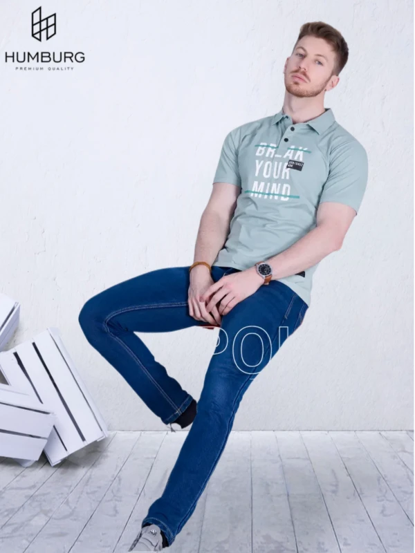 Stay cool and confident in this light green polo tee featuring a bold “Break Your Mind” graphic. Crafted from premium quality fabric by HUMBURG for everyday comfort and smart casual style.