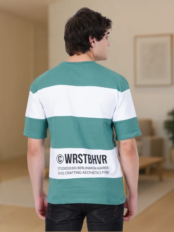 Stay bold and breezy in this mint green and white oversized tee featuring WRSTBHVR prints – a must-have for streetwear lovers.