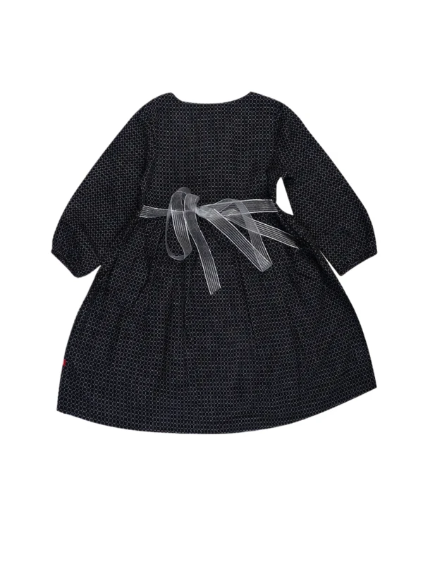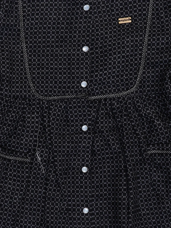 "Classic Black Girls Dress with Front Buttons & Pockets – Full Sleeve Comfort & Style"