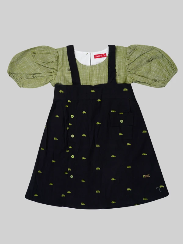 This adorable puff-sleeve green top paired with a navy printed skirt is perfect for everyday charm. Made from soft, breathable fabric, it's gentle on skin and ideal for playdates, parties, or outings. Easy to wear and super comfy!