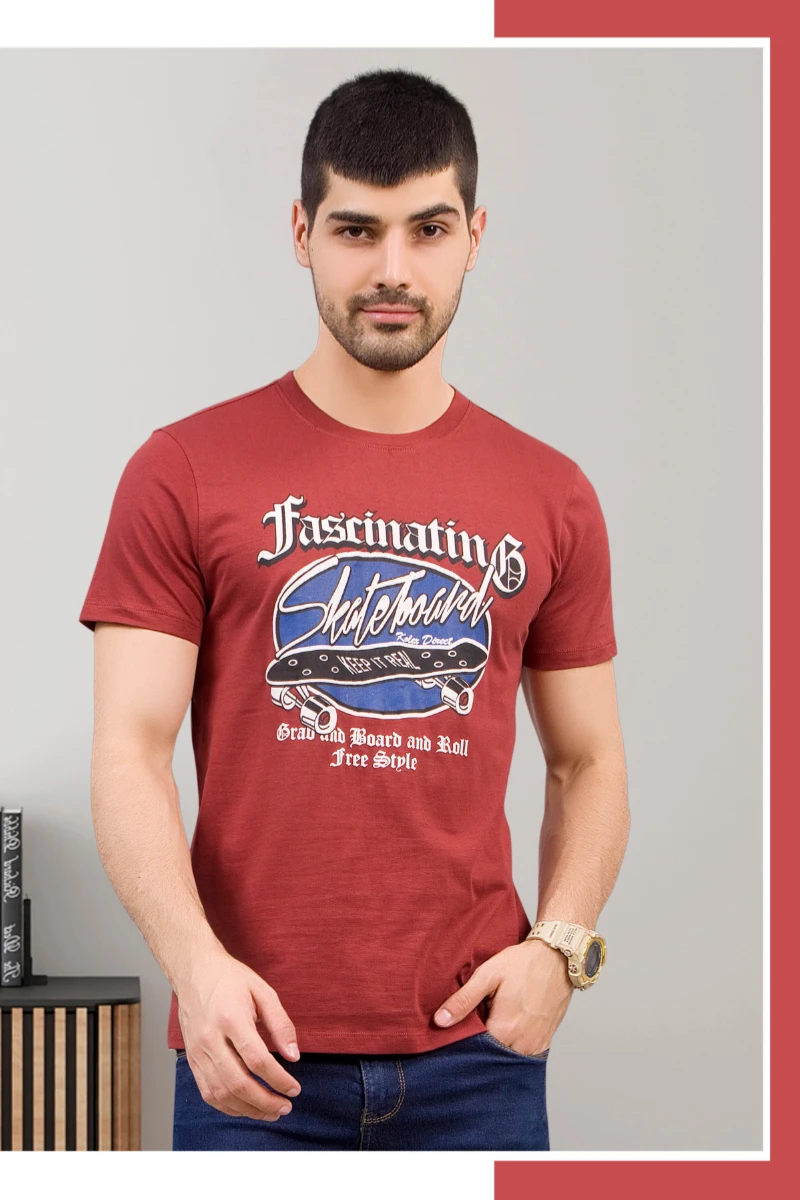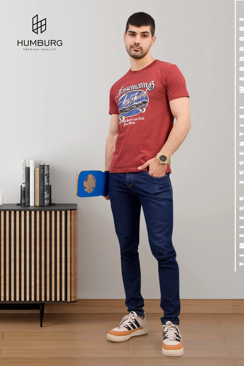 Upgrade your casual style with this eye-catching maroon graphic printed T-shirt from Humburg – Premium Quality. Made from 100% pure cotton, this T-shirt offers ultimate comfort, breathability, and a soft feel against the skin, making it perfect for all-day wear.