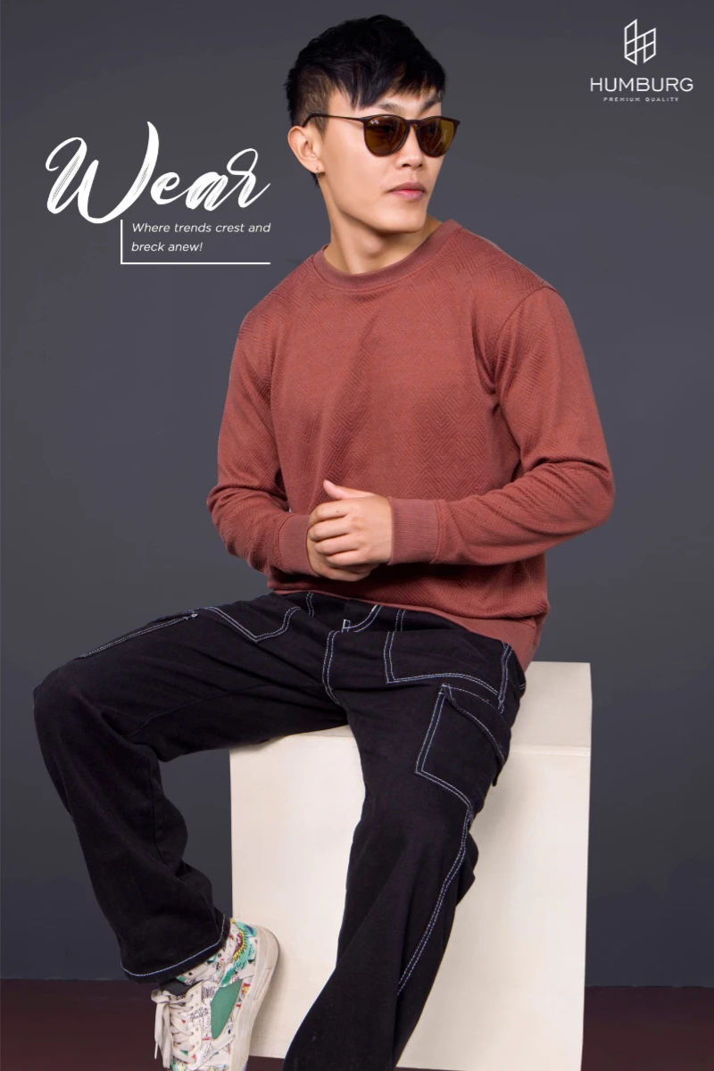 Elevate your wardrobe with Humburg’s signature full sleeve jacquard sweatshirt — where texture meets trend.
