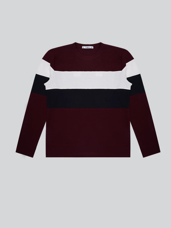 Upgrade your casual look with this maroon, white, and black colorblock full sleeve tee. Crafted from soft, breathable fabric—perfect for everyday wear, outings, and cooler days. Stylish comfort that stands out.