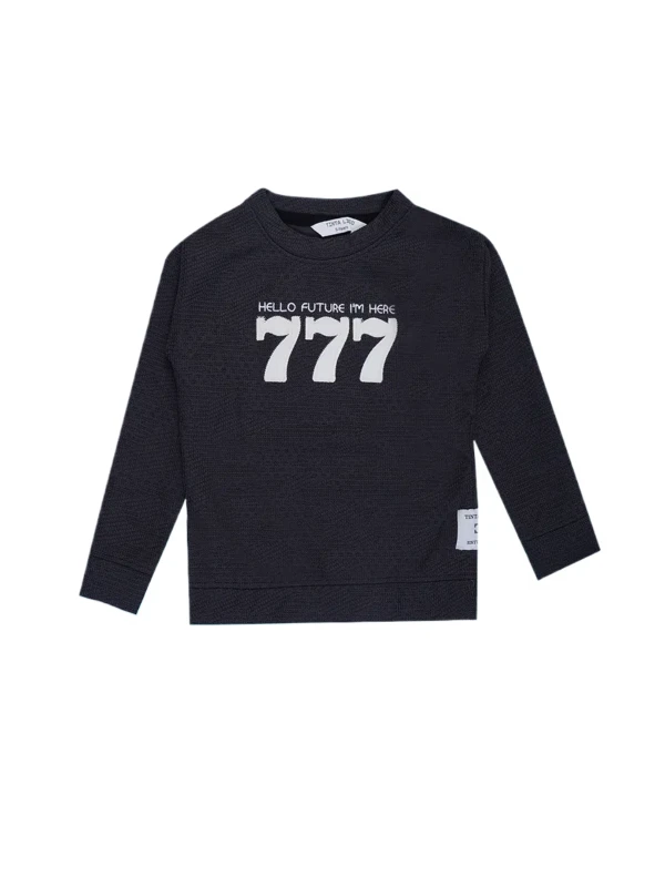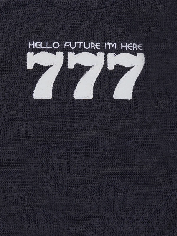 Smart and cozy, this navy blue sweatshirt with a bold "HELLO FUTURE 777" print is perfect for little boys who are ready to shine. Made for comfort and cool vibes all day long!