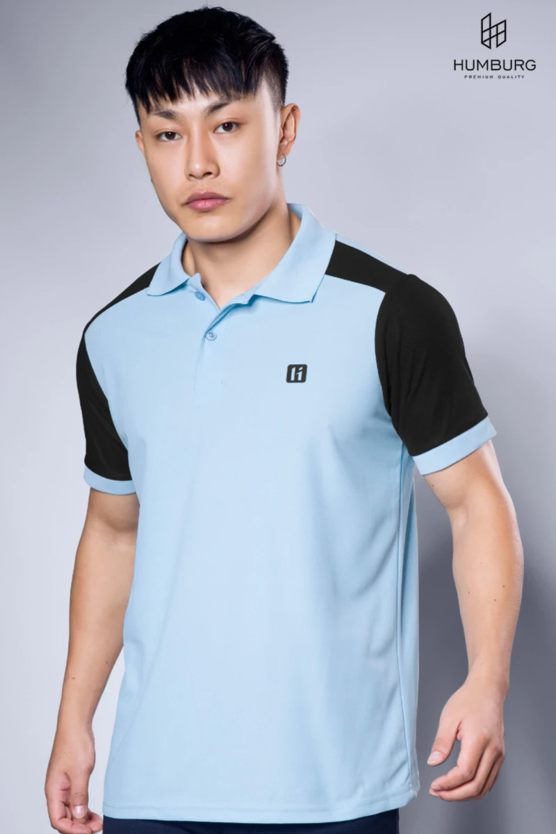 Elevate your everyday style with the Humburg Colorblock Polo T-Shirt, crafted for the modern man who values comfort with a touch of edge. This sky blue polo features striking black sleeves and shoulder panels, creating a bold contrast that's effortlessly stylish.