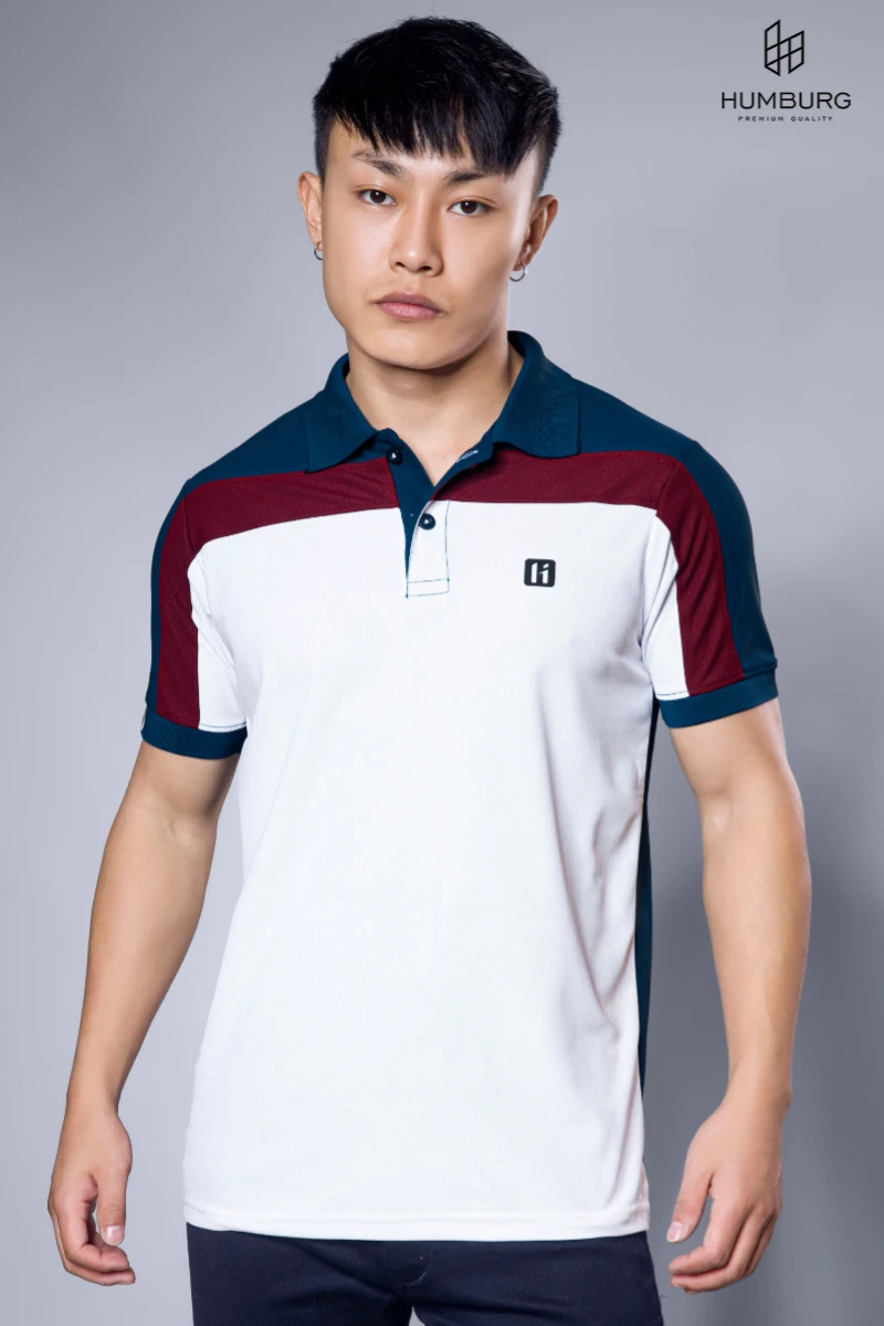 Humburg Colorblock Polo T-Shirt – White, Maroon & Teal