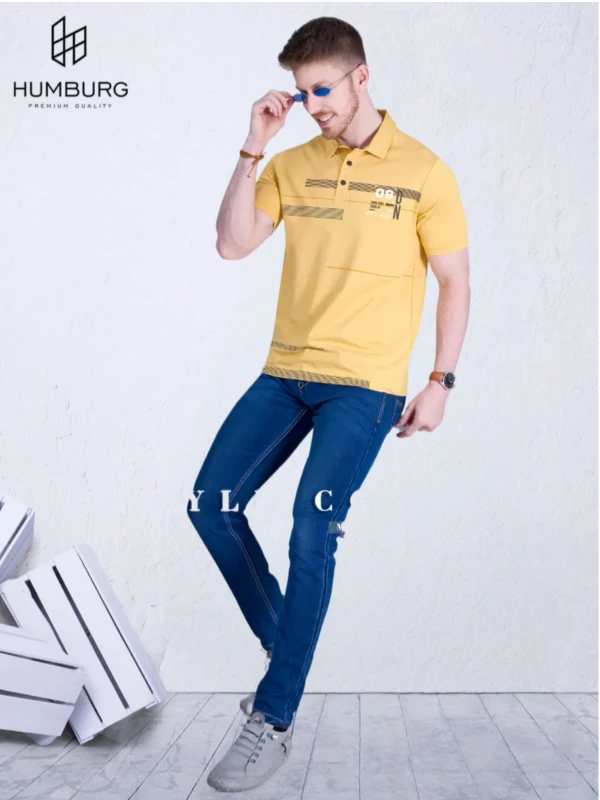 Brighten up your wardrobe with this stylish yellow polo t-shirt, featuring clean black line detailing and a modern “09” chest print. Made from breathable fabric for comfort and everyday wear