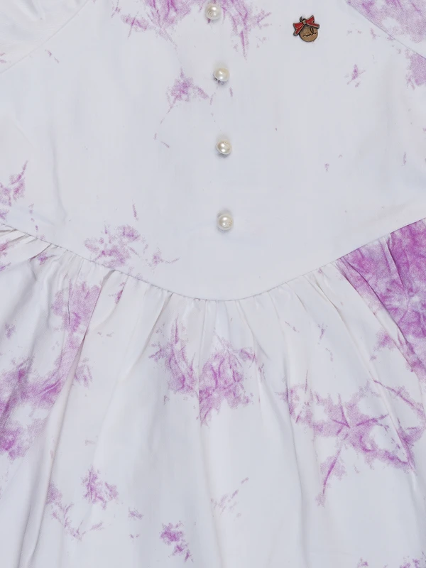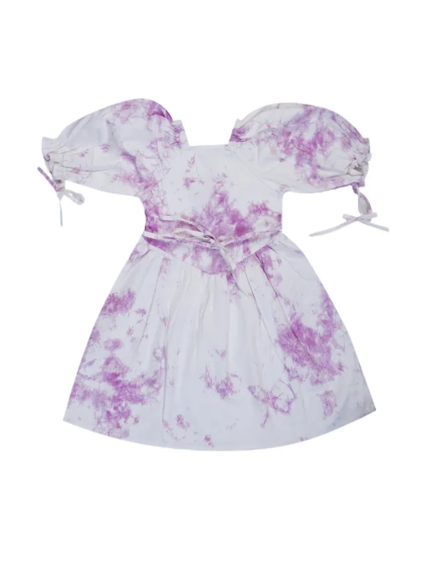 This lovely dress features a soft pink tie-dye pattern, elegant puff sleeves, and front pearl-style buttons. Made from breathable cotton fabric – perfect for birthdays, playdates, or summer outings in style!