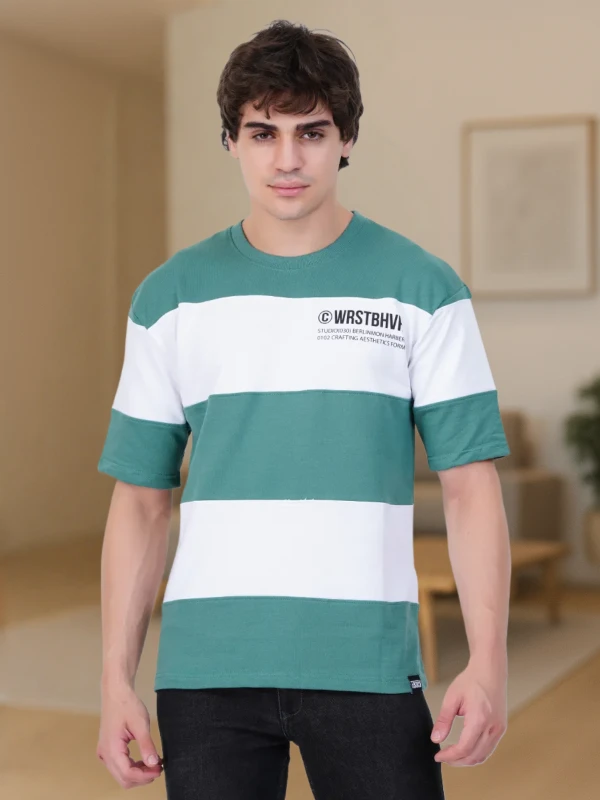 Stay bold and breezy in this mint green and white oversized tee featuring WRSTBHVR prints – a must-have for streetwear lovers.