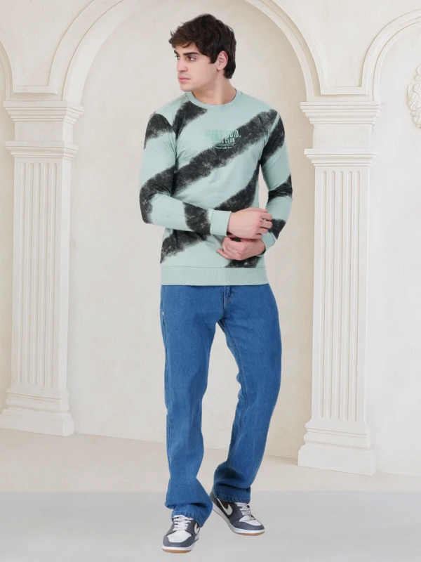 Step up your casual look with this mint green sweatshirt featuring bold black tie-dye swirls. Made with soft, breathable fabric for everyday comfort and eye-catching street style.